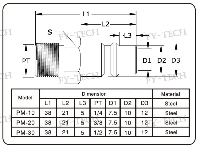 ※ Material: mainbody - hardened steel.