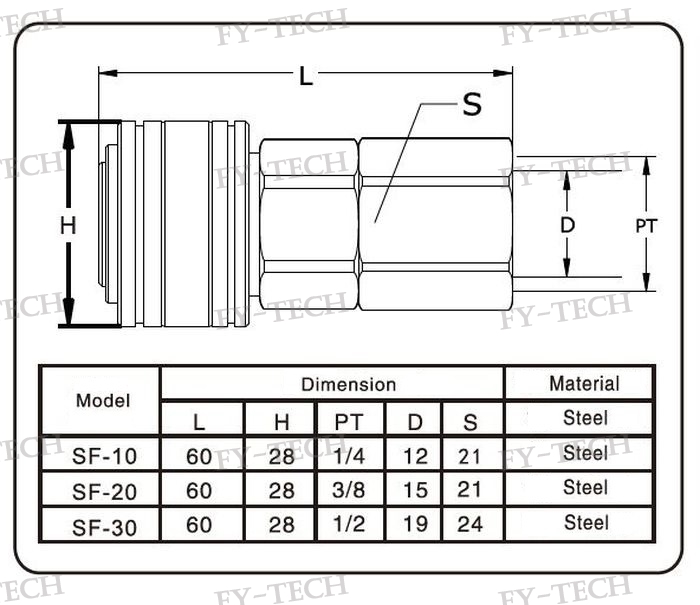 ※ Material: main body - hardened steel; protective band - PE, seal - butyronitrile. Steel ball - 304 stainless steel, spring - 304 stainless steel.