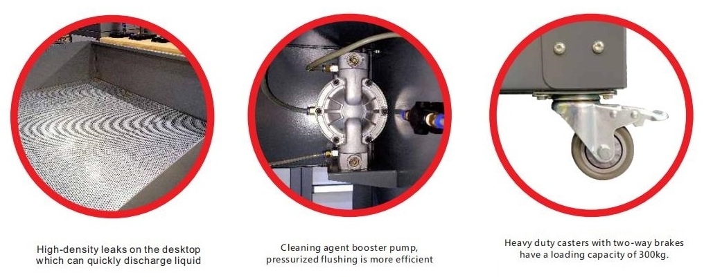 ø The cleaning workbench is made of industrial-grade coldrolled steel, and the frame is assembled in one time without any welded joints to improve the quality and stability of the product.