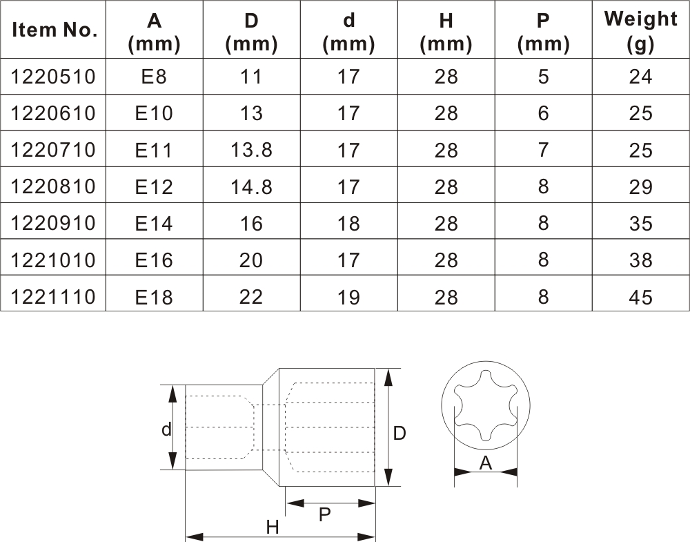 Socket is made by imported CR-V steel with cold forged, the torque reaches 130% of the German DIN standard.