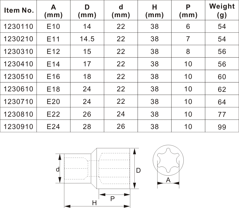 Socket is made by imported CR-V steel with cold forged, the torque reaches 130% of the German DIN standard.