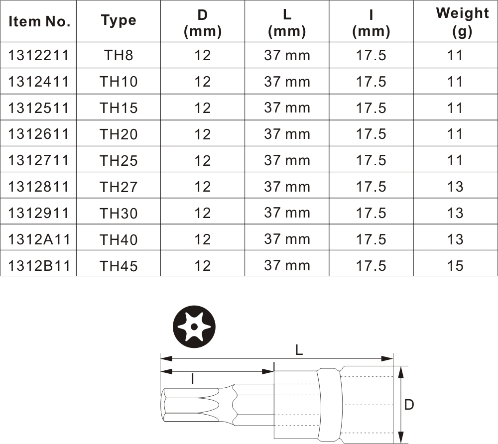 Bits use imported S2 alloy steel, the hardness is HRC 58~61, and the torque standard is more than 150% of German DIN standard.