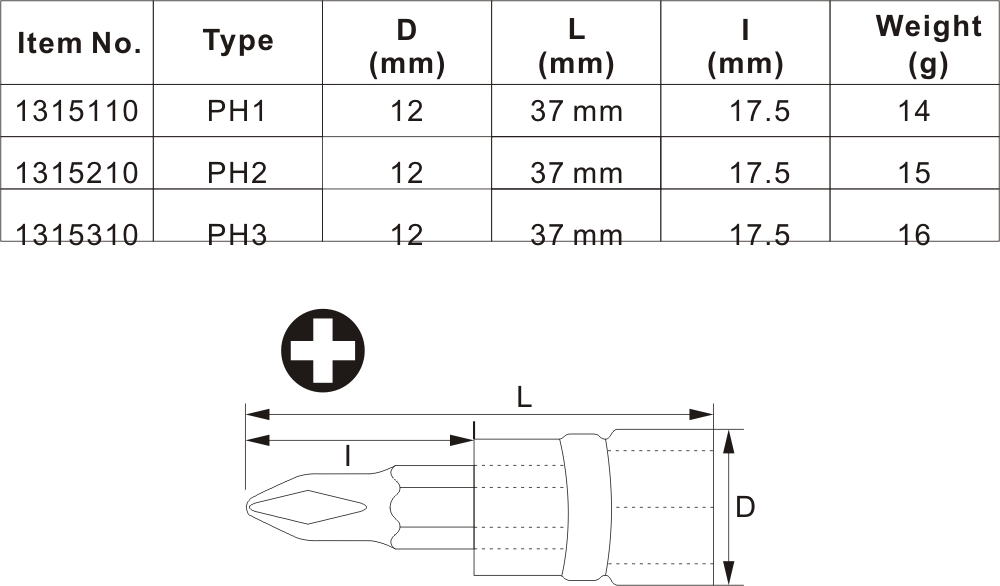 Bits use imported S2 alloy steel, the hardness is HRC 58~61, and the torque standard is more than 150% of German DIN standard.