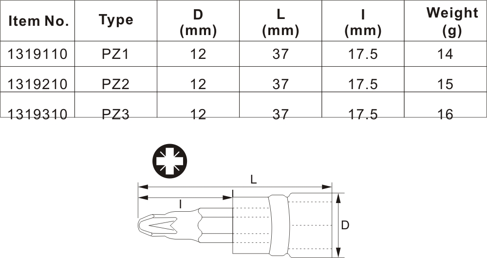 Bits use imported S2 alloy steel, the hardness is HRC 58~61, and the torque standard is more than 150% of German DIN standard.