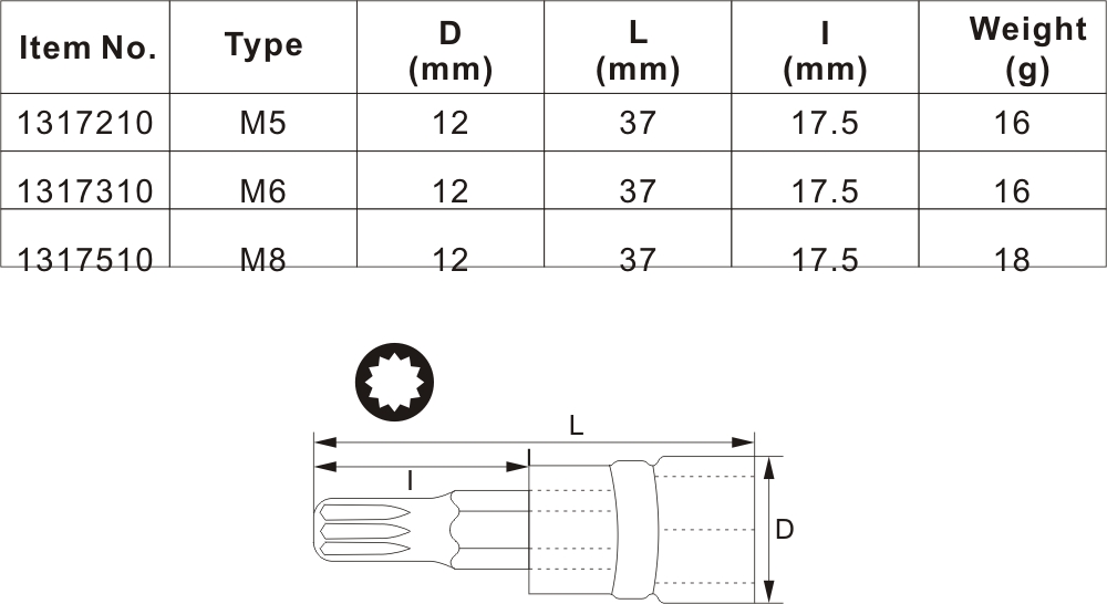 Bits use imported S2 alloy steel, the hardness is HRC 58~61, and the torque standard is more than 150% of German DIN standard.