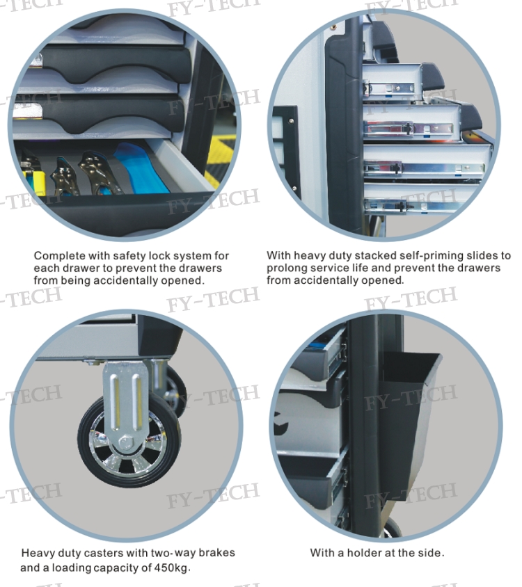 ※ With heavy duty stacked self-priming slides to prolong service life and prevent the drawers from accidentally opened.